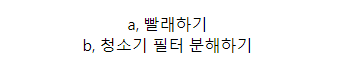 {id:'b', content:'์ฒญ์๊ธฐ ํํฐ ๋ถํดํ๊ธฐ'},